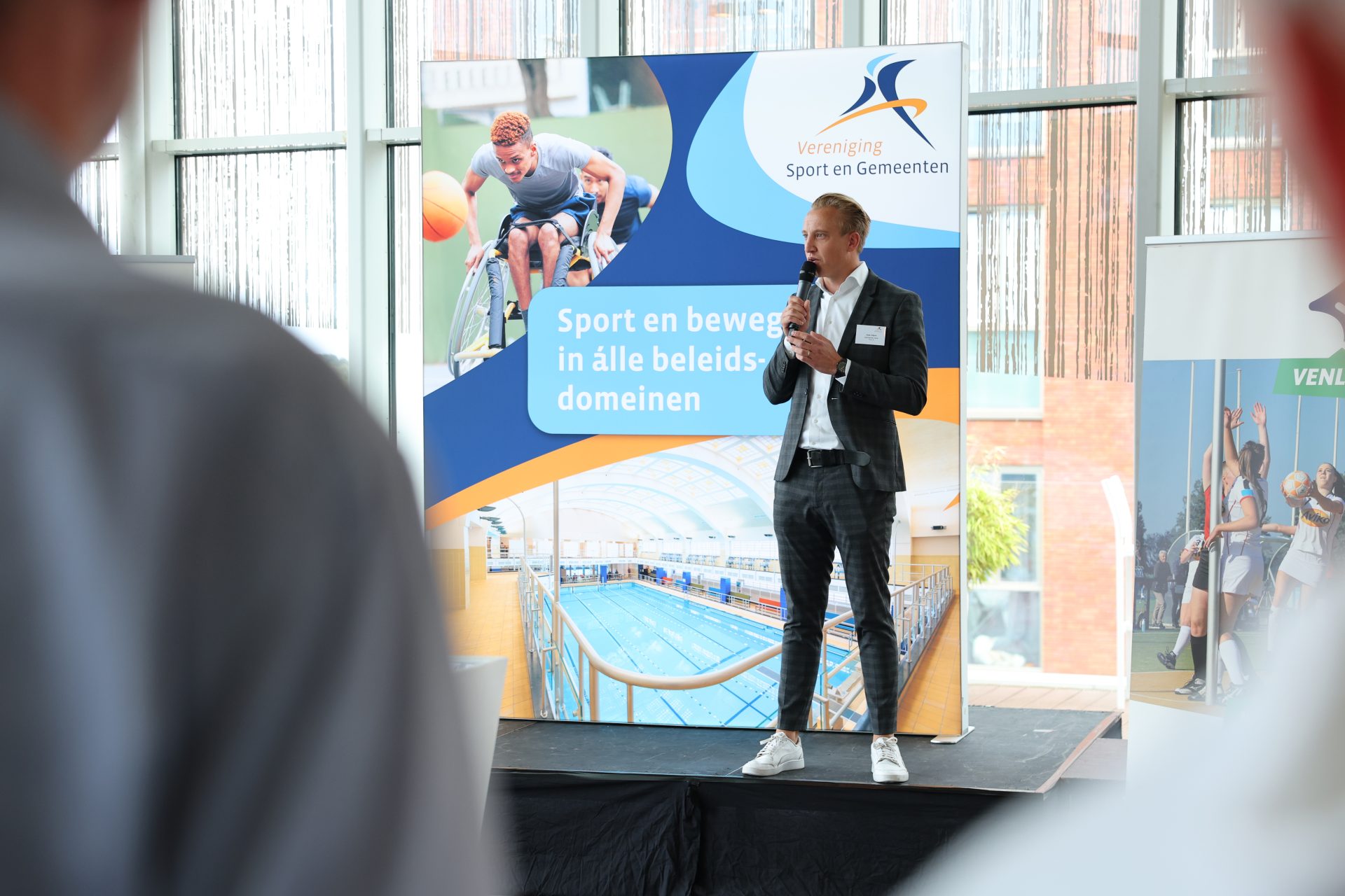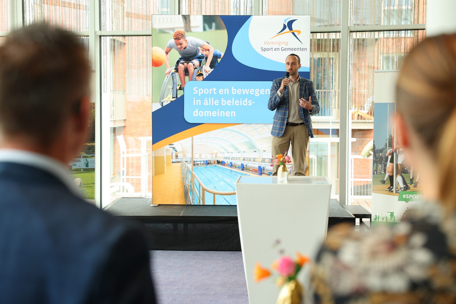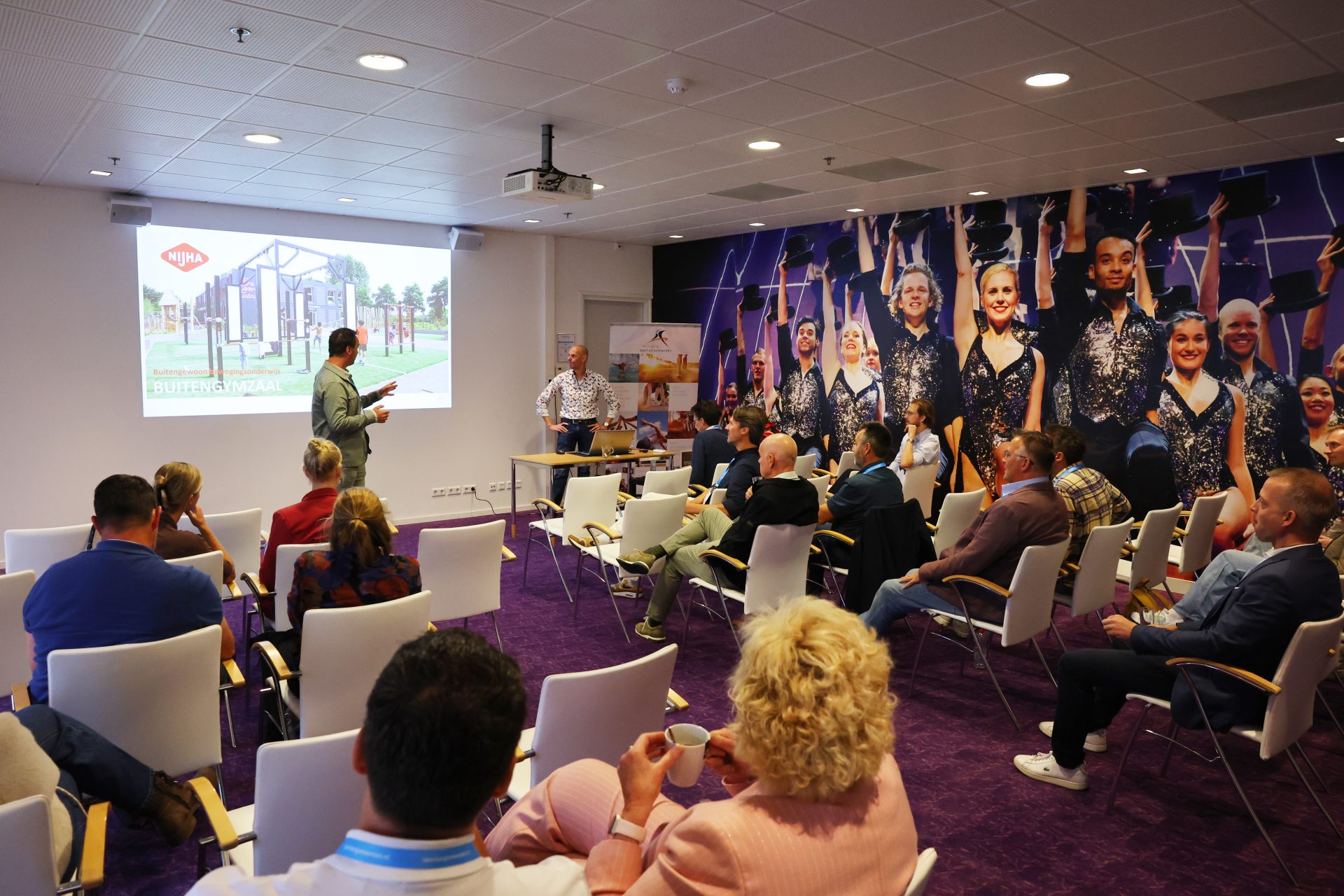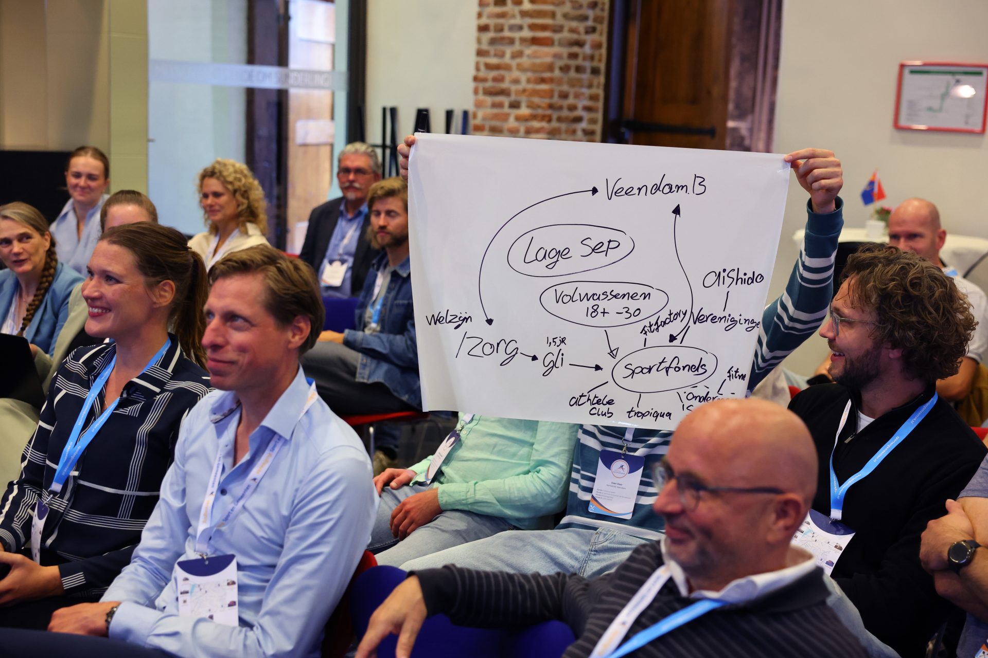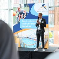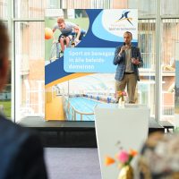 Thijs Zonneveld opende de dag met scherpe vraagstukken over sport en bewegen in Nederland. Dominique Schreinemachers wist de zaal te raken met haar indrukwekkende verhaal vol lessen over samenwerking, leiderschap en veerkracht.