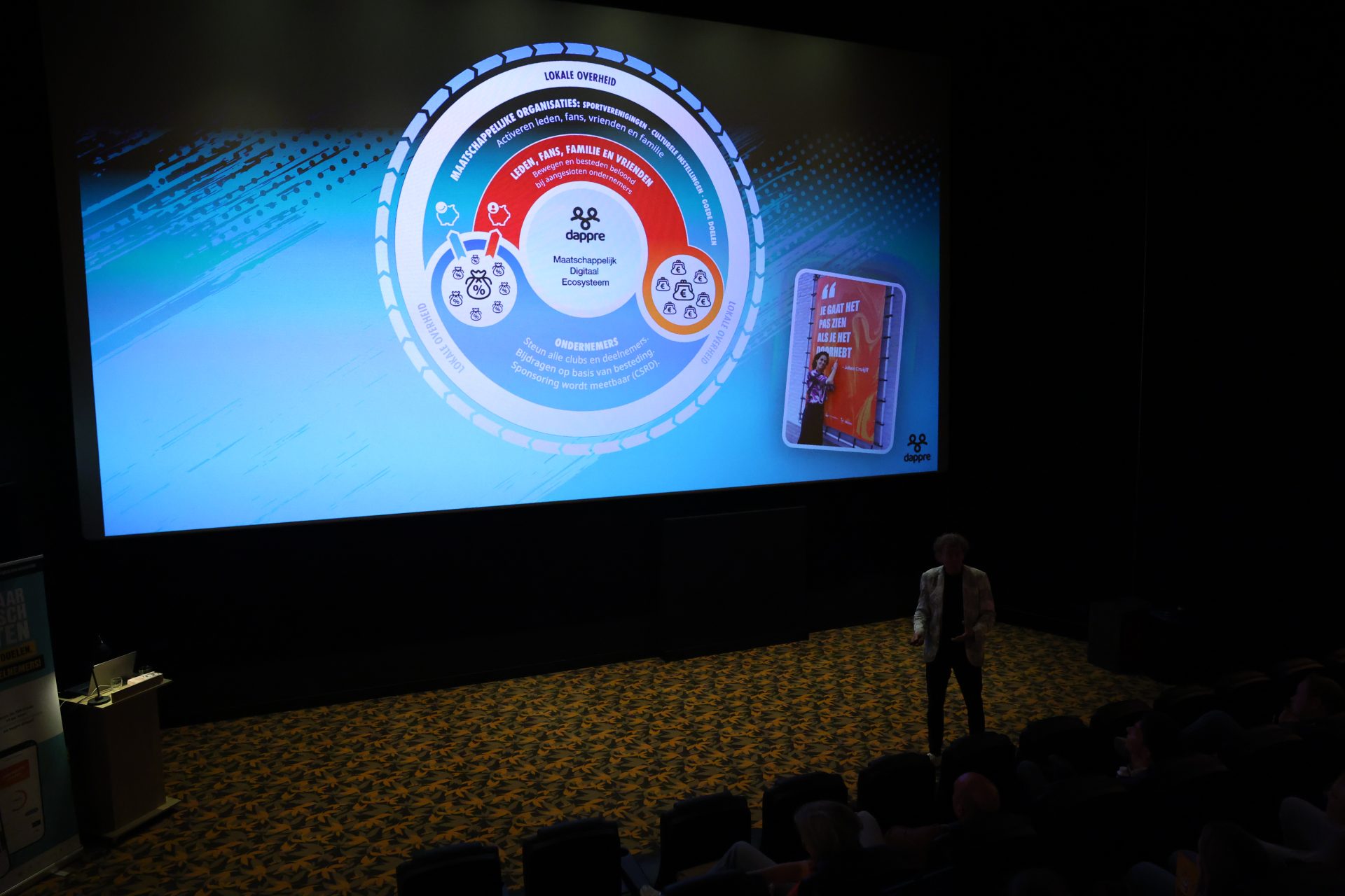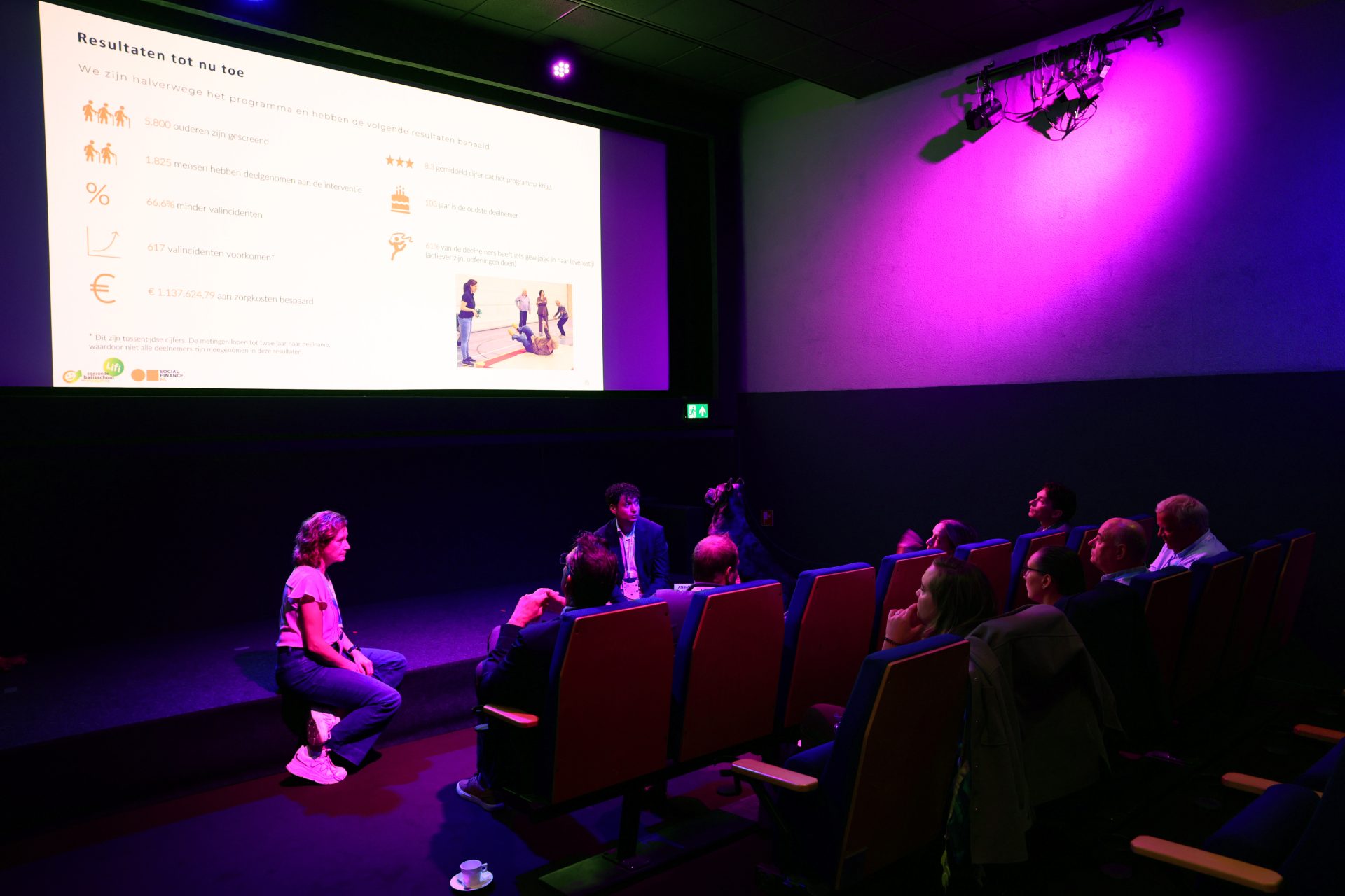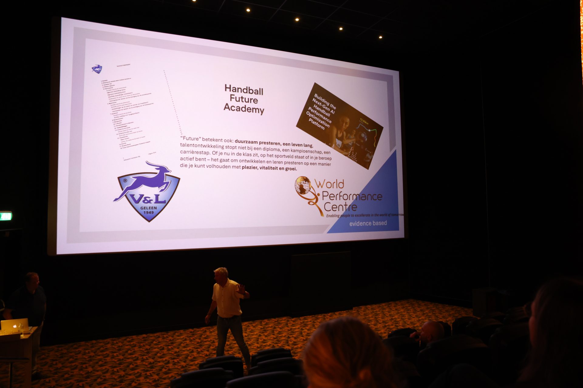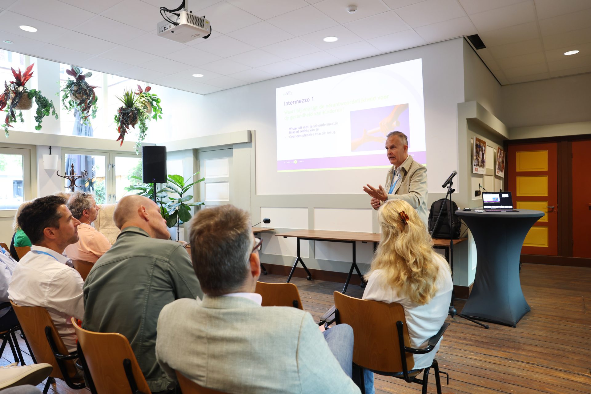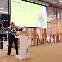 Thijs Zonneveld opende de dag met scherpe vraagstukken over sport en bewegen in Nederland. Dominique Schreinemachers wist de zaal te raken met haar indrukwekkende verhaal vol lessen over samenwerking, leiderschap en veerkracht.